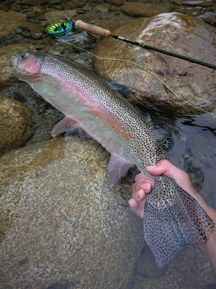 ニンフ・ストリーマーフィッシングの場合は、5~7番、9~11フィート程度のシングルハンドorスイッチロッド。
